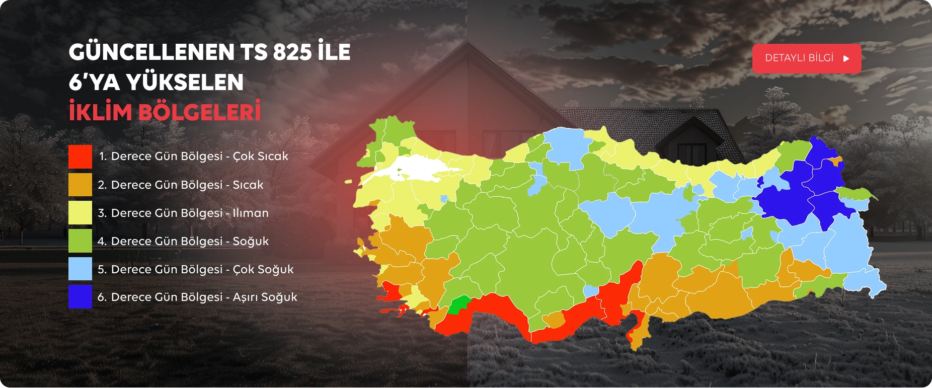1 Nisan 2025 itibarıyla yürürlüğe giren revize TS 825 Binalarda Isı Yalıtımı Kuralları Standardı, binaların artık sadece ısıtma ihtiyacına göre değil, hem ısıtma hem de soğutma ihtiyacına göre tasarlanmasını zorunlu hâle getirdi.